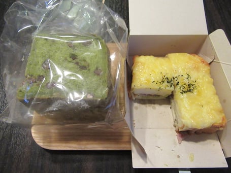 右のパンはお昼に!左の抹茶と小豆のパンは朝に頂きました。